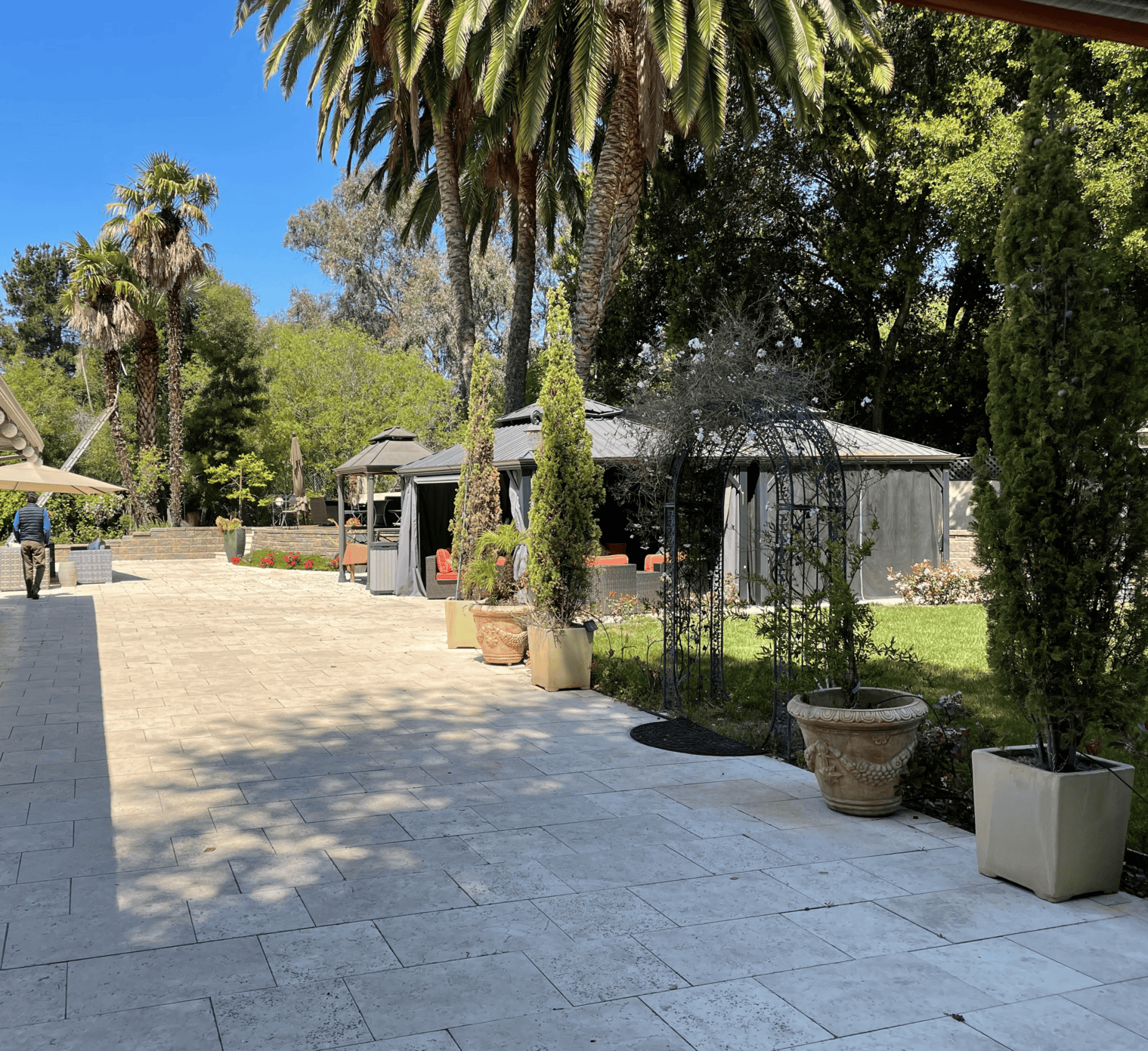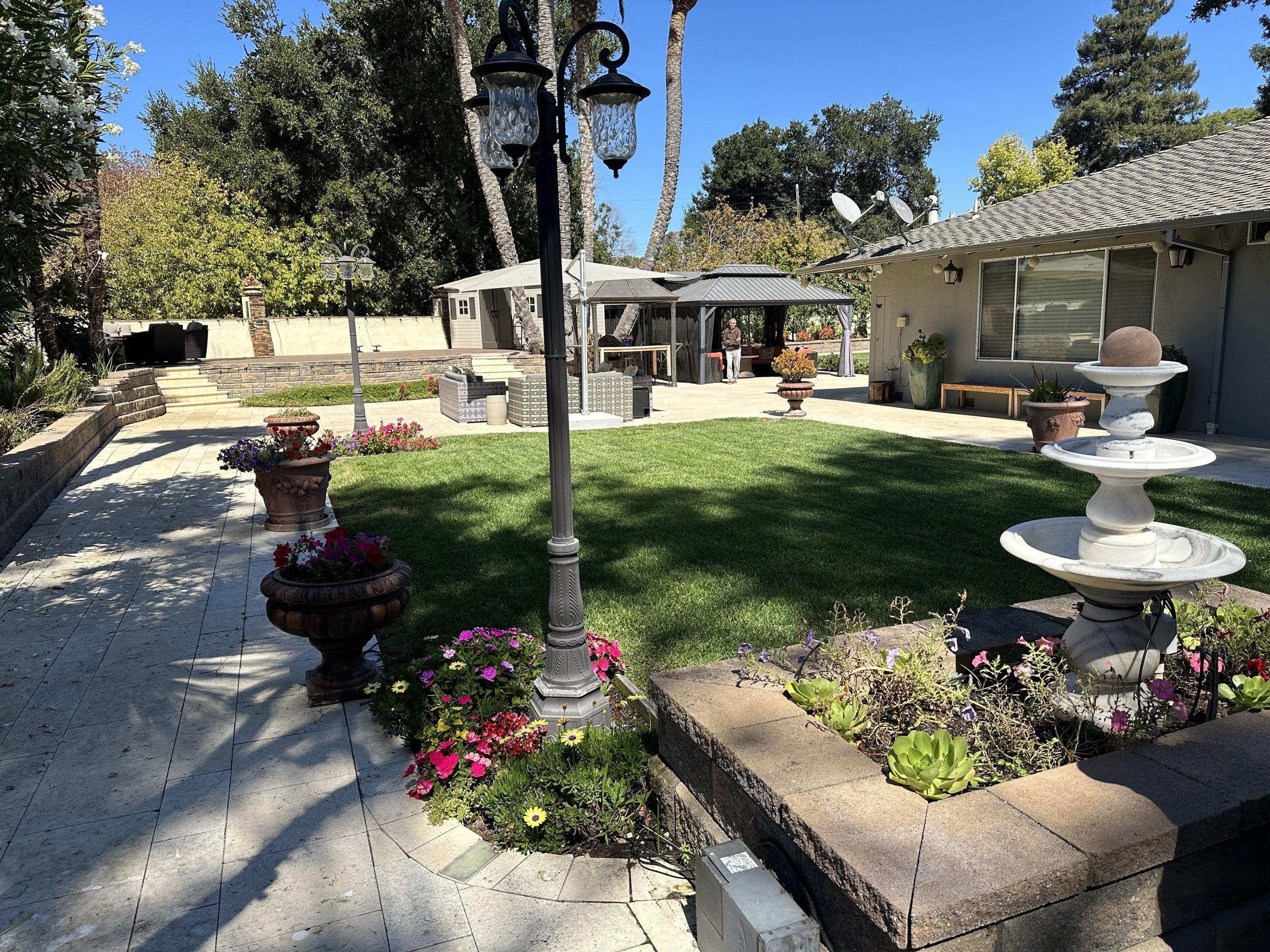 Looking for a unique, fresh space in the heart of Silicon Valley to host an outdoor event? Then our resort-like 20,000+ sq feet outdoor event space is just for you. Featuring two huge lawns, lots of paver space, a 1500 sq. ft. stage, six seating areas with fire pits, umbrellas, and gazebos, a domed marble gazebo and waterfall, a creek behind it, this is the most picturesque party place in the Bay Area!
